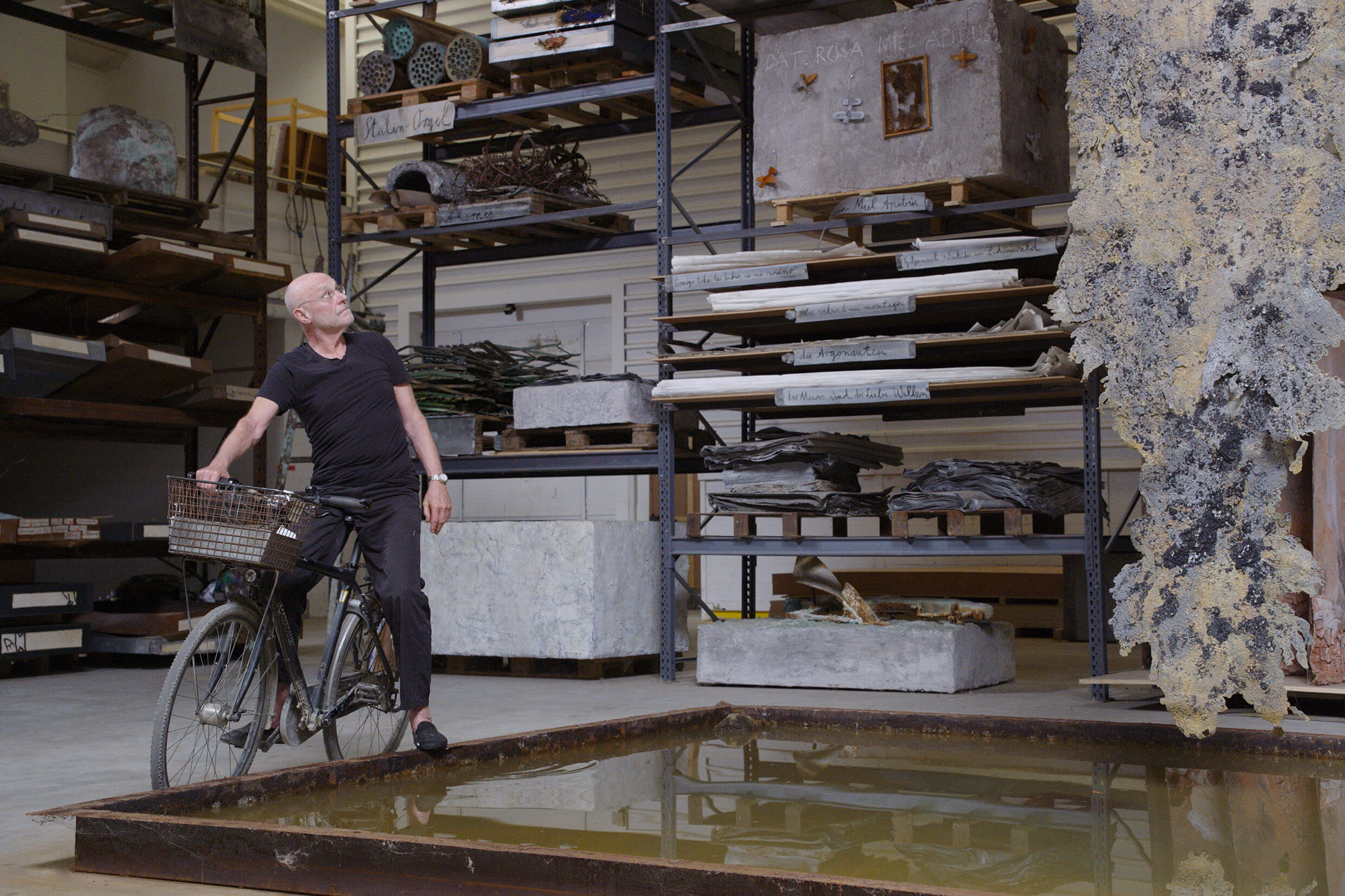 Il documentario – ma sarebbe meglio dire l’esperienza poetica – tratta dell’opera di Anselm Kiefer, pittore e scultore tedesco nato in Germania l’otto marzo del 1945, esattamente due mesi prima dell’otto maggio del ’45, momento della resa tedesca. Kiefer riceve molto presto un riconoscimento come abile disegnatore, vince un premio che gli permetterà di ripercorrere le tappe salienti dell’opera di Van Gogh in Europa, fino a giungere ad Arles, luogo dell’anima del pittore olandese. Allievo stimato di Joseph Beuys, il più noto artista contemporaneo tedesco del ‘900, per la sua poetica anticonvenzionale e utopista, comincia una sua ricerca pittorica che sfocerà velocemente anche nella creazione di installazioni che daranno corpo alla costruzione di residenze d’artista, in cui Anselm lavorerà. Questo gli permetterà di creare – oltre che le sue opere monumentali, che si tratti di quadri o sculture – di dare anche forma alla sua poetica visiva, lavorando attivamente su vasti territori, appezzamenti di terra, dove opererà alla creazione di immense strutture edili, che saranno al contempo residenze d’artista, e messa in forma della sua poetica.