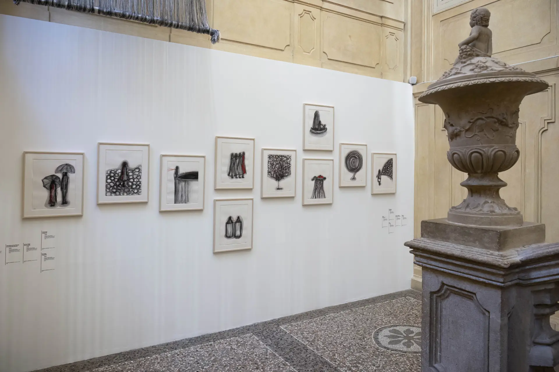 La mostra è distribuita su quattro piani, in ognuno di essi, un pezzo di vita di Shiota, come i disegni risalenti al 2019 e gli oggetti che rappresentano le parti del suo corpo. I particolari che fanno rinascere la memoria, i fili neri,che avvolgono il pianoforte bruciato durante l’infanzia di Chiharu Shiota e che lei conserva per ricordare l’odore acre, così come le sedie affondate all’interno di una ragnatela nera di fili che divengono stanza e incubi, o che fanno da contrasto con i vestiti bianchi intrappolati, la nostra seconda pelle, dice l’artista.