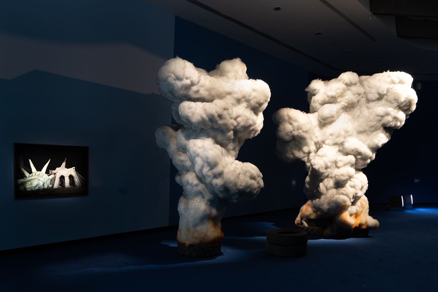 Alex Da Corte, riconosciuto a livello internazionale per il suo linguaggio multidisciplinare, ha costruito un percorso che supera le barriere tra le arti: muovendosi tra il concreto e l’astratto, la narrazione del curatore invita il pubblico a immergersi in un viaggio tra i movimenti dell’universo, nel tempo e nello spazio. A partire dall’enigmatica fotografia di Luigi Ghirri del 1978 dal titolo Modena, il percorso espositivo mette in scena una lenta marea che evoca una riflessione sull’organico e il fenomenologico, superando i confini tradizionali delle discipline artistiche per proporre una narrazione corale e immersiva. Con questo progetto, il MAXXI sottolinea l’importanza delle sue attività di acquisizione e conservazione, in un percorso che non solo celebra il patrimonio esistente, ma propone un racconto vivo, in costante evoluzione, capace di dialogare con il presente e il futuro. La mostra della Collezione MAXXI, The Large Glass, allestita nella Galleria 4 del museo, si presenta come un viaggio che celebra il perpetuo scambio e dialogo tra le opere d’arte e gli artisti che le hanno concepite. Tra i protagonisti dell’esposizione spiccano nomi di artisti di fama internazionale, con opere selezionate per la loro capacità di raccontare storie universali attraverso le loro personali prospettive. Tra queste, oltre a Modena di Luigi Ghirri, troviamo The Globe di Atelier Van Lieshout, una rappresentazione del nostro pianeta che invita a riflettere sui confini mutevoli e sulle visioni contrastanti della Terra. Si prosegue con Mixing Parfums di Massimo Bartolini, un’installazione che stimola i sensi e l’immaginazione attraverso una porta girevole che diffonde nell’aria fragranze naturali, come il profumo delicato del gelsomino e l’essenza intensa della terra. Si prosegue con opere come Mappa di Alighiero Boetti, che rappresenta il mondo attraverso un linguaggio visivo unico, e White Bed di Domenico Gnoli, artista capace di esaltare i dettagli quotidiani per trasformarli in simboli universali. For the Benefit of All the Races of Mankind di Kara Walker è un’opera potente che svela, attraverso immagini forti e incisive, la storia dolorosa del razzismo. Fire Tires di Gal Weinstein, per la prima volta in mostra al MAXXI, evoca un momento di violenza sospeso nel tempo, in cui i materiali utilizzati suggeriscono una trasformazione molecolare, simbolo di mutamento. Il percorso prosegue con altre opere emblematiche, tra cui Untitled (Redemption) di Francis Alÿs, Senza titolo di Marisa Merz e Sculture di linfa di Giuseppe Penone, tra i protagonisti più significativi del movimento dell’Arte Povera. Arricchiscono ulteriormente il racconto della mostra le opere di Wolf Kahlen, con i lavori Trespassing e Light Loss e Preparing the Flute di William Kentridge. Il percorso espositivo si estende poi ai progetti architettonici, tra cui il Bivacco Fanton dello studio DEMOGO e The Lantern dello studio AWP, che non solo riflettono sull’evoluzione dello spazio urbano, ma si intrecciano con una riflessione più ampia sull’identità e sul rapporto tra costruzione e natura. Infine, la fotografia contemporanea completa il percorso con opere che esplorano forme instabili, come quelle catturate da Stefano Cerio e le immagini delicate e sperimentali di Rachele Maistrello. I lavori dialogano con la struttura stessa del MAXXI, il cui linguaggio fluido e dinamico rappresenta una cornice perfetta per accogliere una mostra che celebra la continua trasformazione dell’arte contemporanea.