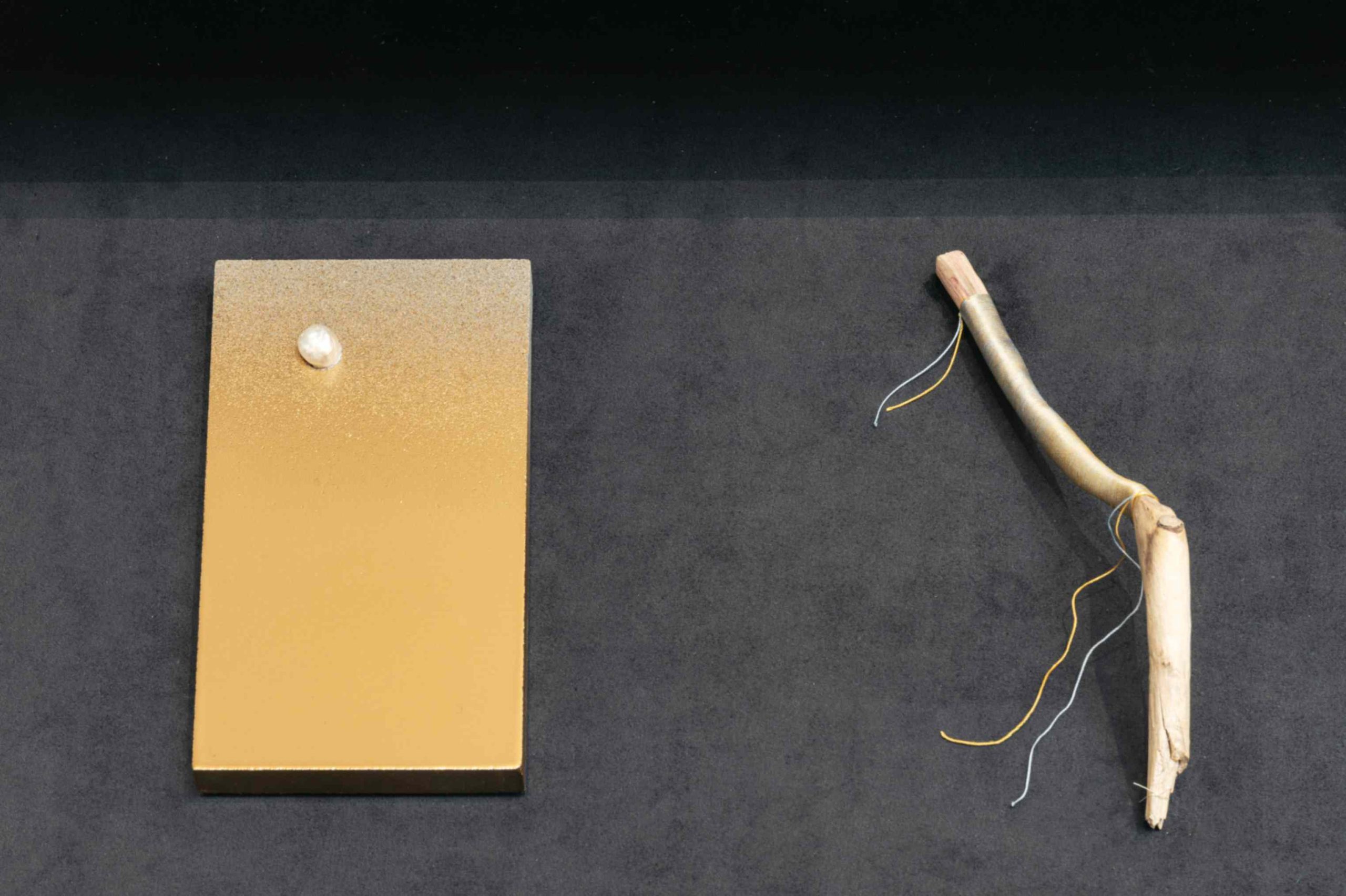 - Sala A5, Serena Fineschi (Siena, 1973) Stella Maris (Tempo di grazia), 2023, perla barocca, oro 24k su pietra serena; courtesy l’artista. © foto Ela Bialkowska OKNO studio