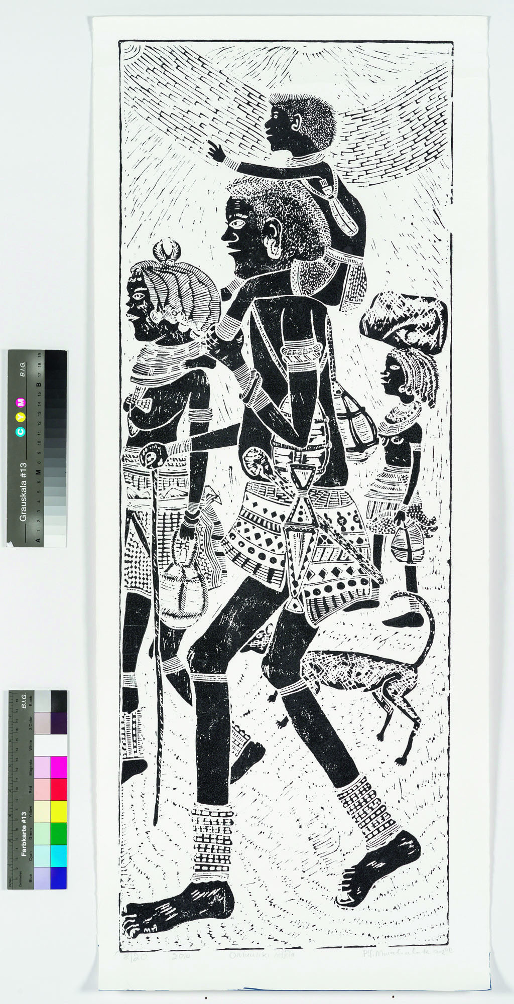 - Peter Mwahalukange (Ohalushu-Oukwanyama, 1964) Omuuliki Ndjila, 2014 Incisione su linoleum / lino cut, 99,5 x 40 cm Coll. Würth