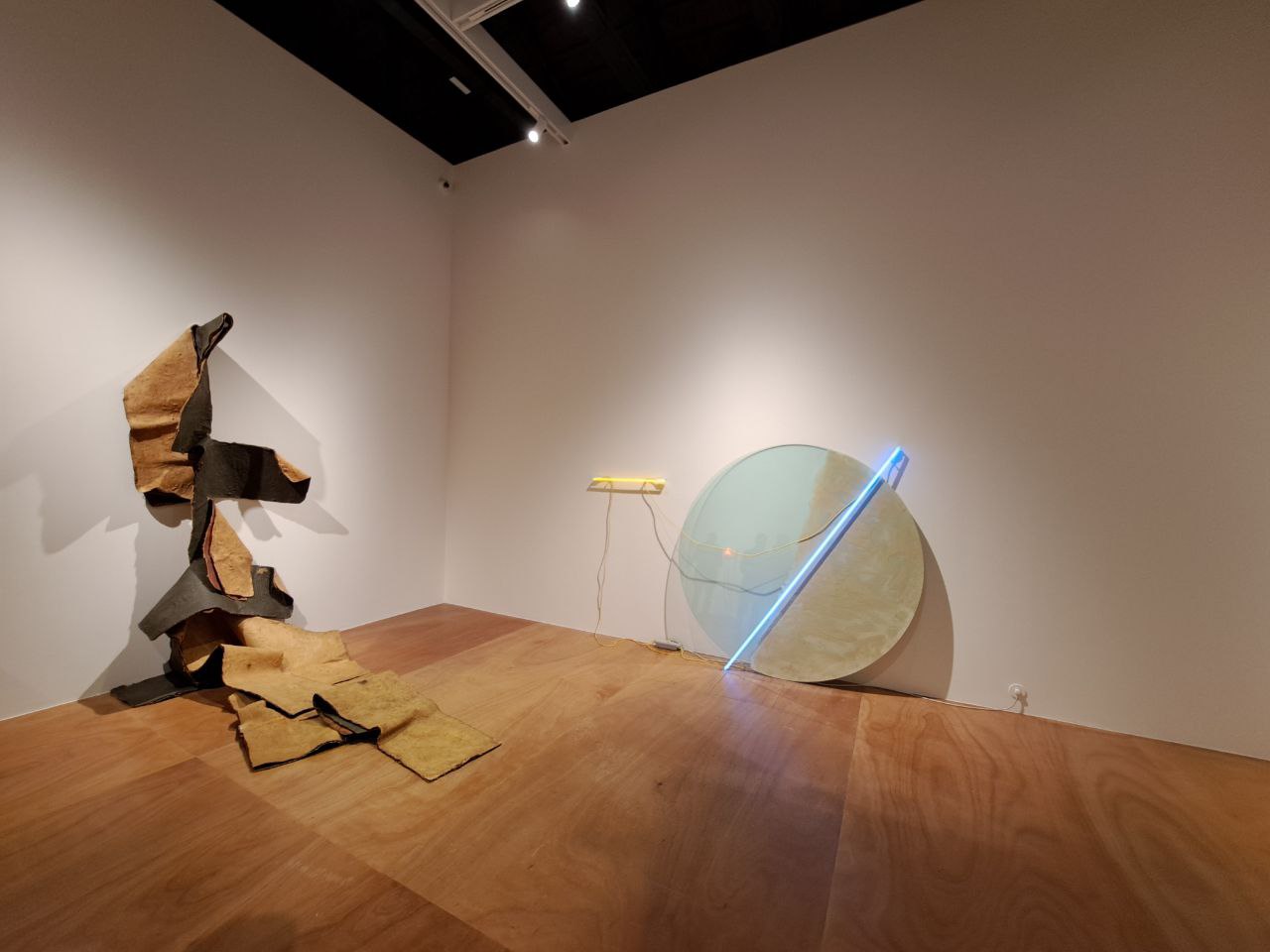 La quarta sala presenta le ricerche degli anni Sessanta che sviluppano e superano il Minimalismo, concentrandosi sul rapporto con lo spazio e la dialettica tra forma e materiale. Robert Morris esplora il concetto di Anti-Form con i suoi Felt Pieces, opere in feltro dove gravità e processo determinano forma e dimensione. Bruce Nauman trasforma il suono in materiale plastico e utilizza il corpo nei primi film per dialogare con lo spazio, coinvolgendo lo spettatore in modo diretto. Richard Serra sperimenta materiali non convenzionali come gomma vulcanizzata e piombo, creando sculture che assumono forme spontanee in relazione al peso e allo spazio. Keith Sonnier integra luce e trasparenza in installazioni al neon, trasformando l’energia luminosa in esperienza sensoriale e psicologica. La sala mostra come questi artisti condividano la tensione a superare le forme chiuse del Minimalismo, privilegiando processo, materia e interazione con lo spettatore.
