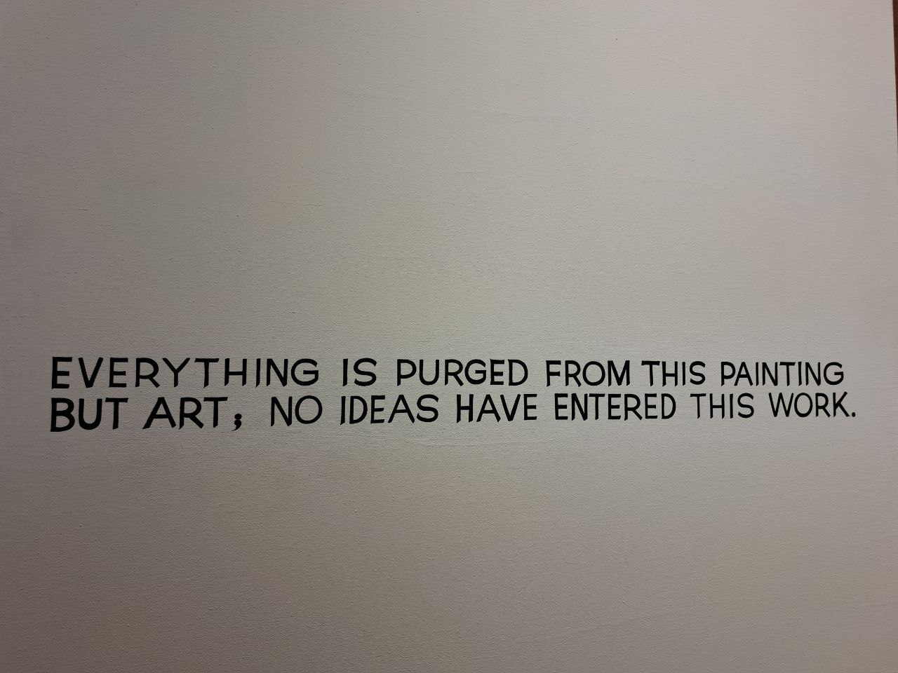 La terza sala esplora il Minimalismo degli anni Sessanta che, parallelamente alla Pop Art, si afferma come reazione all’intensità emotiva dell’Espressionismo Astratto, privilegiando forme essenziali, materiali specifici e chiarezza strutturale. Donald Judd e Robert Morris abbandonano la pittura per confrontarsi direttamente con lo spazio e la materia, mentre Larry Bell e John McCracken approfondiscono luce, trasparenza e colore come elementi strutturali della scultura. Il percorso include anche pratiche concettuali, con i wall drawings di Sol LeWitt, le installazioni rigorose di Mel Bochner Barry Le Va e i Text Paintings di John Baldessari, opere che mettono in discussione la proprietà e la permanenza dell’oggetto artistico. Chiude il percorso Peter Halley, che negli anni Ottanta reinterpreta la geometria minimalista in chiave urbana e sociale. La sala racconta così il passaggio da una ricerca di riduzione formale a un’indagine sul significato stesso dell’opera.
