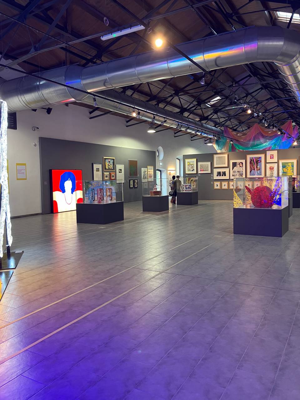 In questa ricerca il curatore della mostra ha dato ampio spazio al mondo delle artiste che propongono sia tele che installazioni, come ad esempio quella di Niki de Saint Phalle, che espande colore e sagome nello spazio terreno e aereo della sala, alle spalle di Warhol.