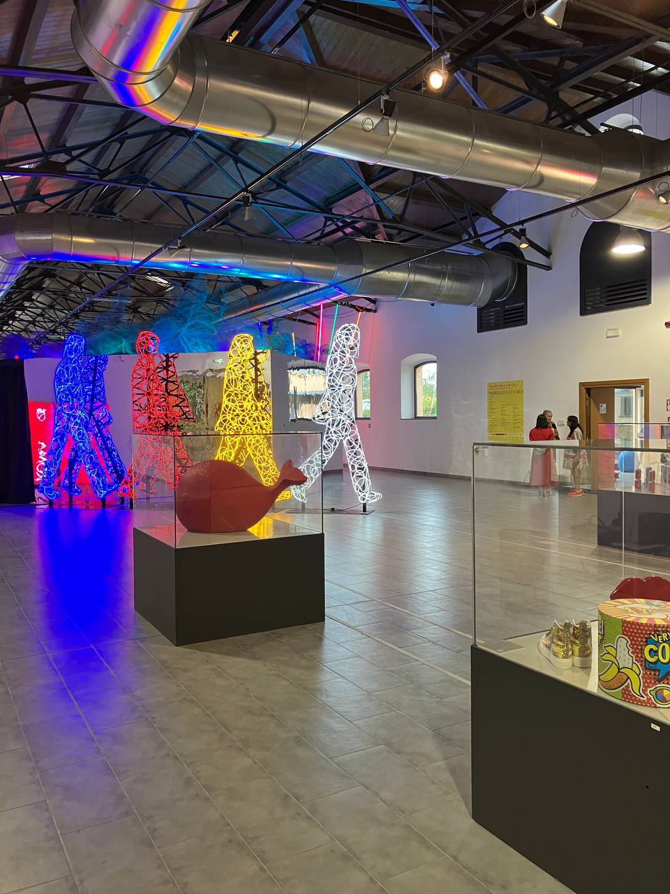 Colori e tratti vibranti caratterizzano anche la produzione artistica di Marco Lodola, fondatore del Nuovo Futurismo, del quale la mostra presenta, tra le altre, il Jim Morrison e l’imponente scultura tridimensionale Abbey Road, al centro del percorso espositivo con i suoi monumentali pannelli portanti per 8 metri di larghezza e 4 di altezza.