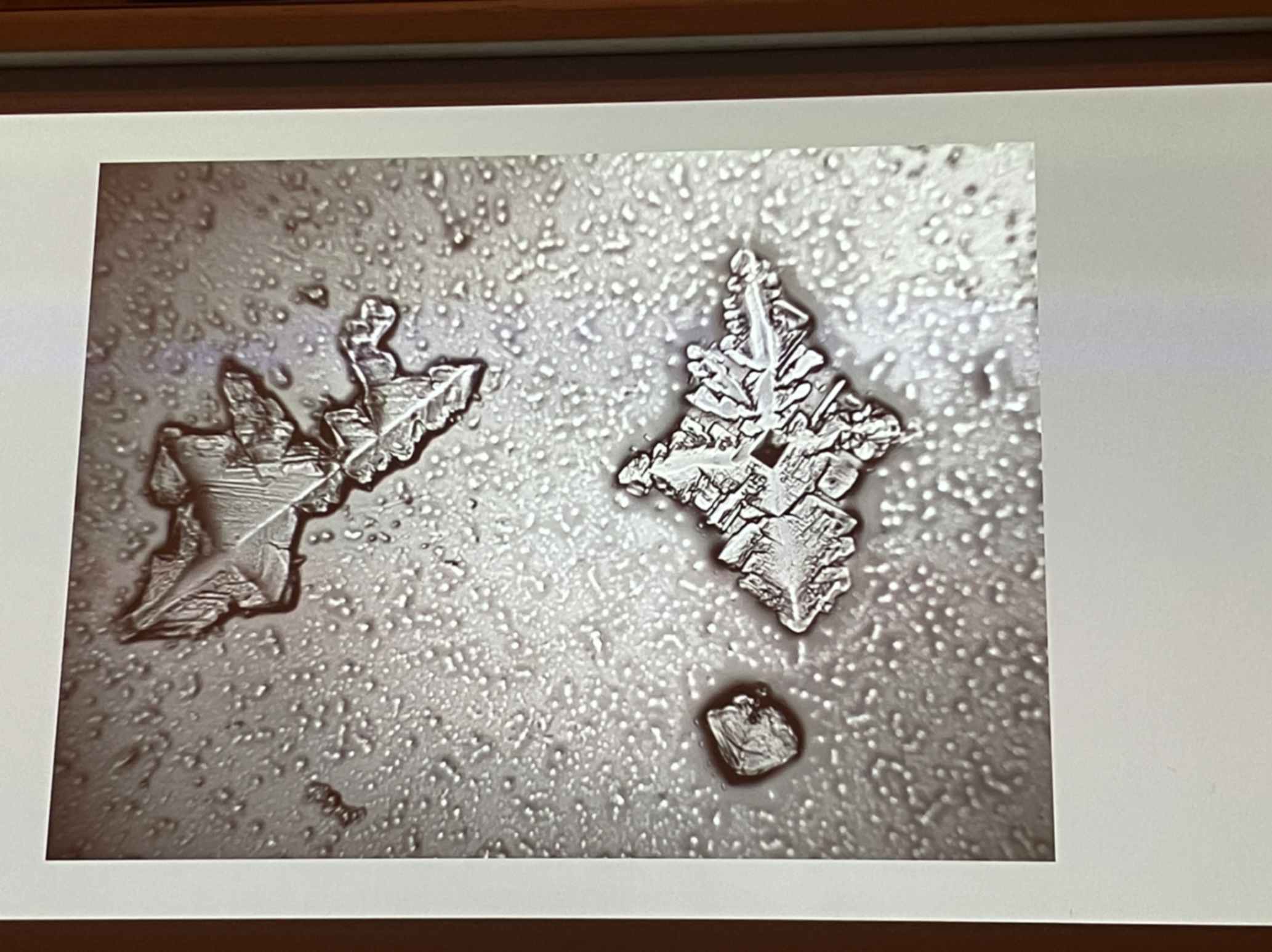 Ma le meraviglie del passato incontrano nella conferenza di Rose-Lynn Fischer lo stupore del presente, del nostro essere viventi, sempre e ancora nel tempo. Rose ha sviluppato una tecnica fotografica che attraverso l’uso del microscopio porta alla luce la conformazione delle lacrime.