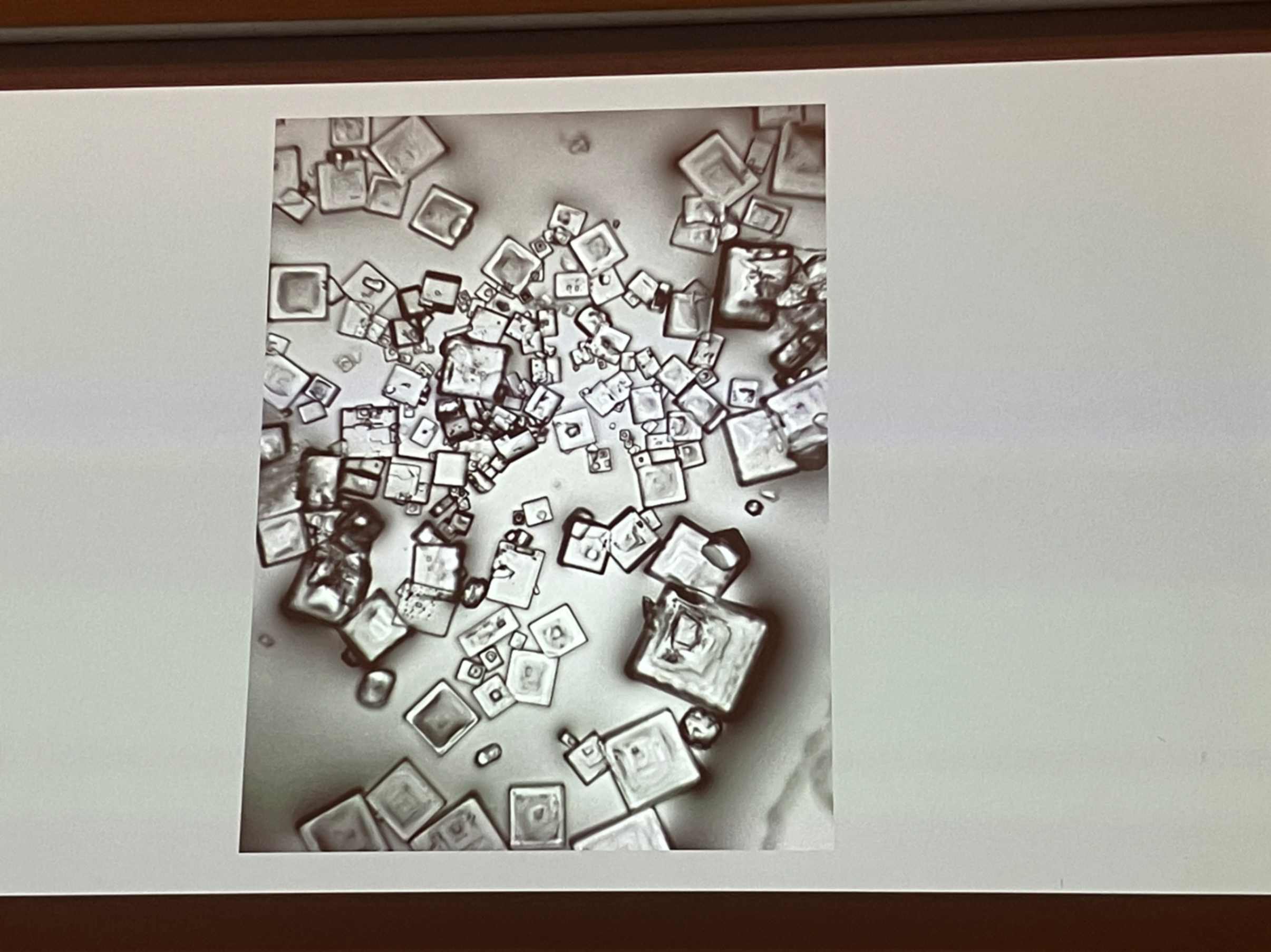 Ma le meraviglie del passato incontrano nella conferenza di Rose-Lynn Fischer lo stupore del presente, del nostro essere viventi, sempre e ancora nel tempo. Rose ha sviluppato una tecnica fotografica che attraverso l’uso del microscopio porta alla luce la conformazione delle lacrime.