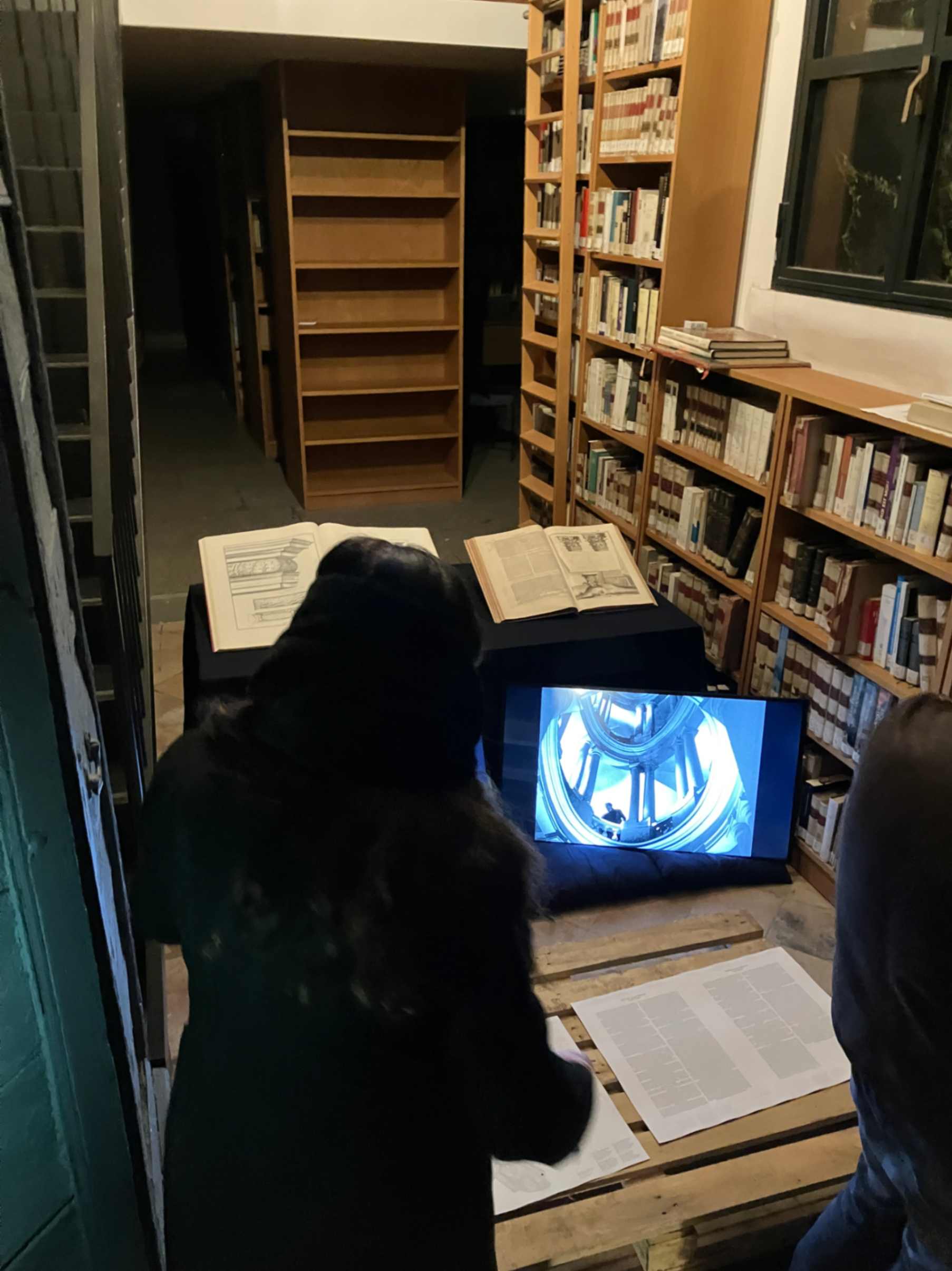 Pierre offre a tutti una grande carta con la completa mappatura delle sue opere presenti in città. Grazie a due frammenti di filmografici su televisori anni ’80 entriamo nella chiesa di Sant’Ivo alla Sapienza: una delle opere più celebri dell’architetto.