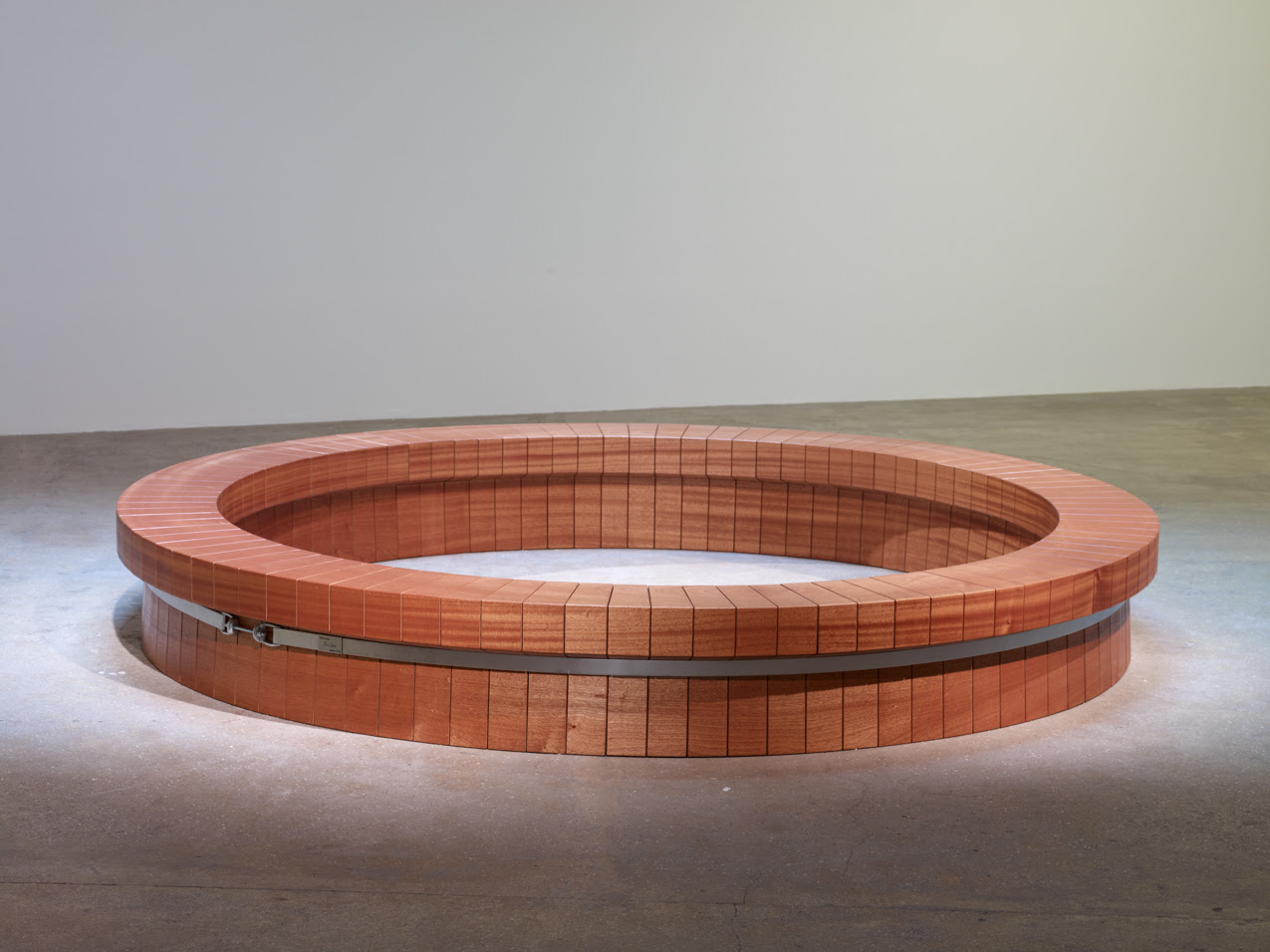 Kabel trasforma la bellezza naturale del materiale tagliando una trave di legno in segmenti uniformi e allineando con precisione le venature organiche. Tenuta insieme esclusivamente da un anello di metallo – senza colla né viti – la panca evoca un senso di coesione, sia nella sua costruzione che nella capacità di reimmaginare lo spazio comune. È una pura espressione di forma intesa come struttura, gesto come assemblaggio.