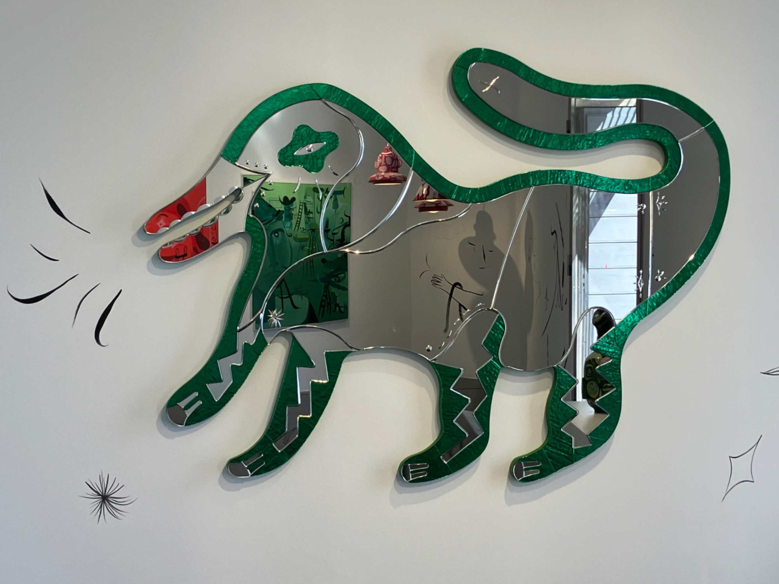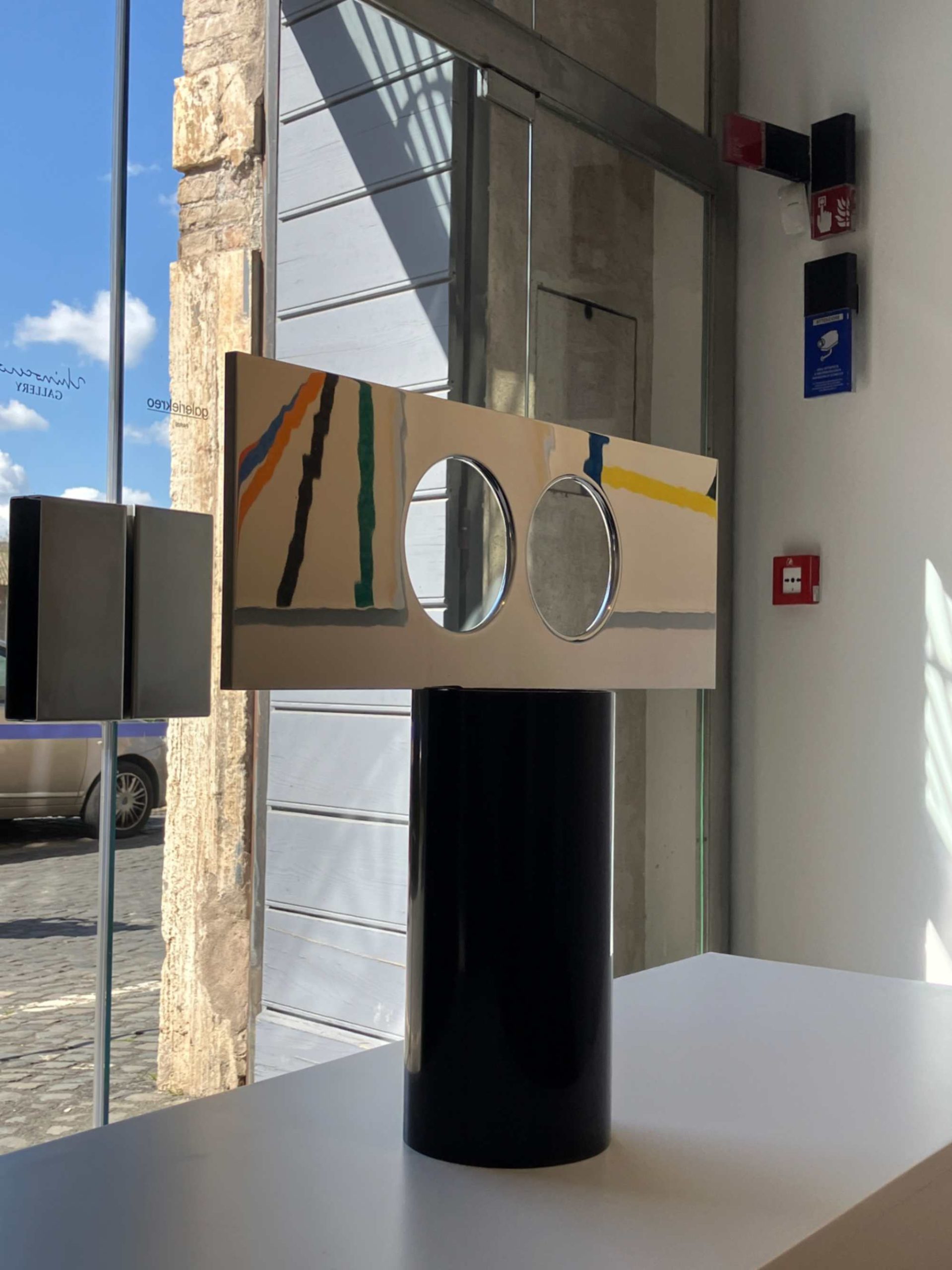Jean-Baptiste Fastrez è presente con specchi avvolti in uno spesso tessuto di velluto a coste, che uniscono superfici morbide e tattili a vetro riflettente. Fastrez infonde loro una presenza scultorea: gli specchi diventano sia forma che movimento, statici ma al contempo capaci di suggerire un’esperienza sensoriale in continuo mutamento.