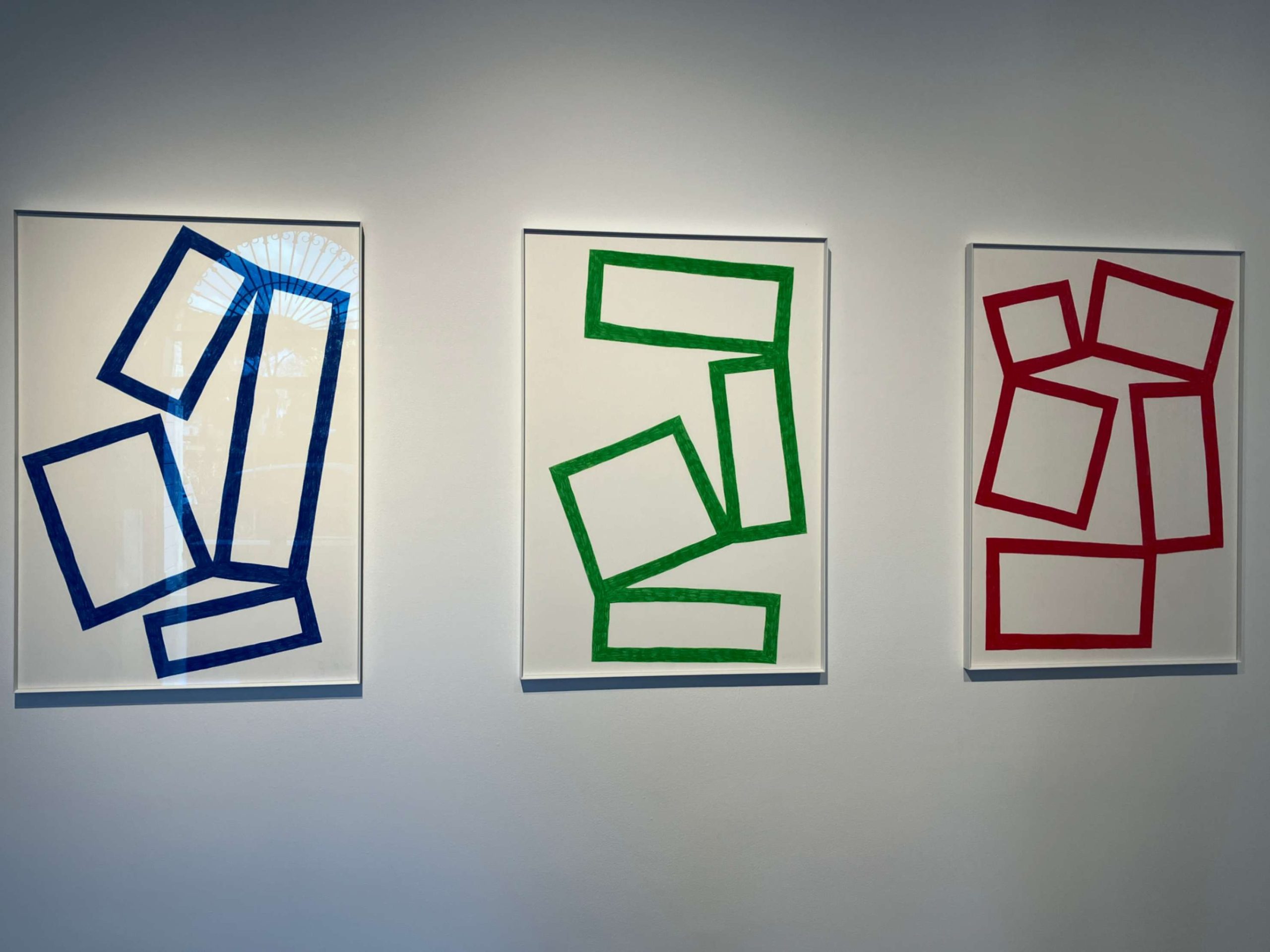 Nella sezione dedicata a Pierre Charpin, una serie di disegni su carta esplora la texture, la profondità e le associazioni formali. Queste composizioni astratte invitano lo spettatore a un coinvolgimento contemplativo attraverso linee, ombre e composizione, riflettendo la sensibilità di Charpin per il gesto come traccia e per la forma come ritmo. La sua esplorazione della geometria e del colore è evidenziata nel tavolino Triangolo, realizzato in pietra lavica smaltata blu-azzurro e bianco lucido.